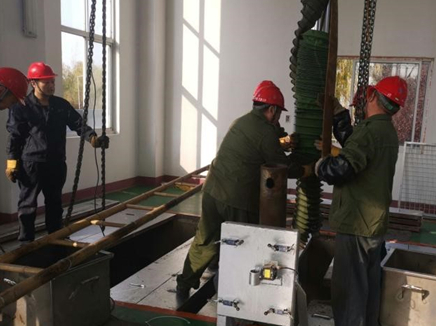 更換閥門滾輪是個(gè)精細(xì)活,由于場(chǎng)地限制,檢修現(xiàn)場(chǎng)的作業(yè)空間非常狹小,并且損壞的閥門重量大、體積大,無論是拆卸還是吊裝難度都大,但是檢修人員經(jīng)驗(yàn)豐富,他們使用檢修房上面懸掛的鋼絲繩電動(dòng)葫蘆吊裝起閥門運(yùn)轉(zhuǎn)件主滾輪及緊固閥門,同時(shí)下到幾米深的閥門洞里拆卸安裝運(yùn)轉(zhuǎn)件。