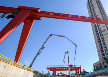 青島地鐵2號(hào)線地下有4層車站,開(kāi)挖深度達(dá)34米,采用明挖順做法施工,目前車站主體結(jié)構(gòu)已經(jīng)順利完成,架設(shè)在車站上方的龍門(mén)吊和鋼絲繩電動(dòng)葫蘆從開(kāi)工到完工都一直承擔(dān)著吊重的角色。