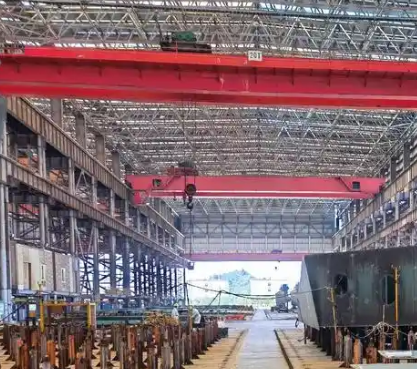 在造船廠船體組裝車間,冠航鋼絲繩電動葫蘆日復一日地辛勤工作著,為一艘艘巨輪的誕生和修復貢獻著自己的力量,見證著造船事業的蓬勃發展。